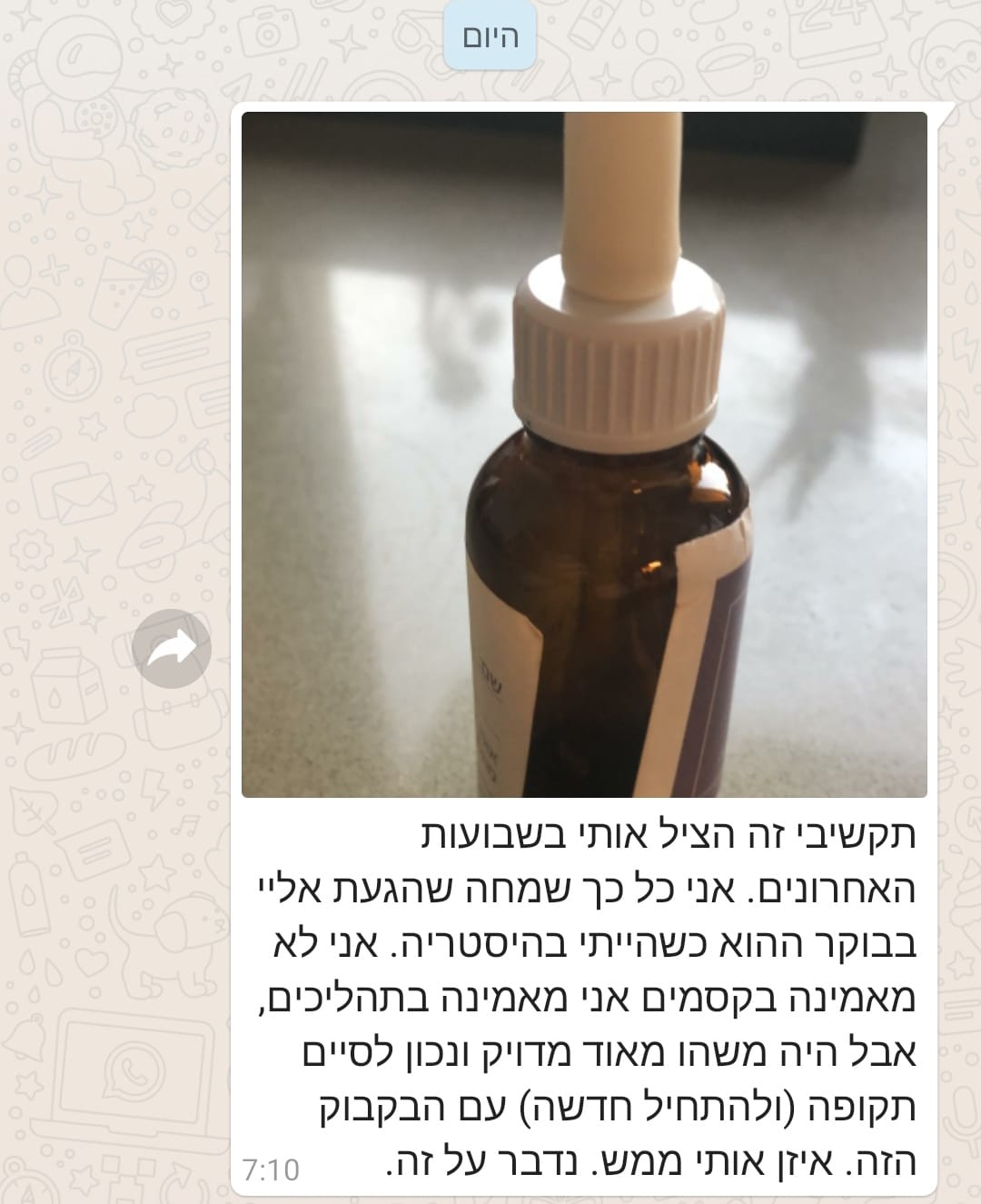 ישבתי עם רביד וידי הפלא שלה ריפרפו מעל בקבוקוני פרחי הבאך.. היא ידעה לתאר לי איך הטיפות האלה יחזקו אותי.