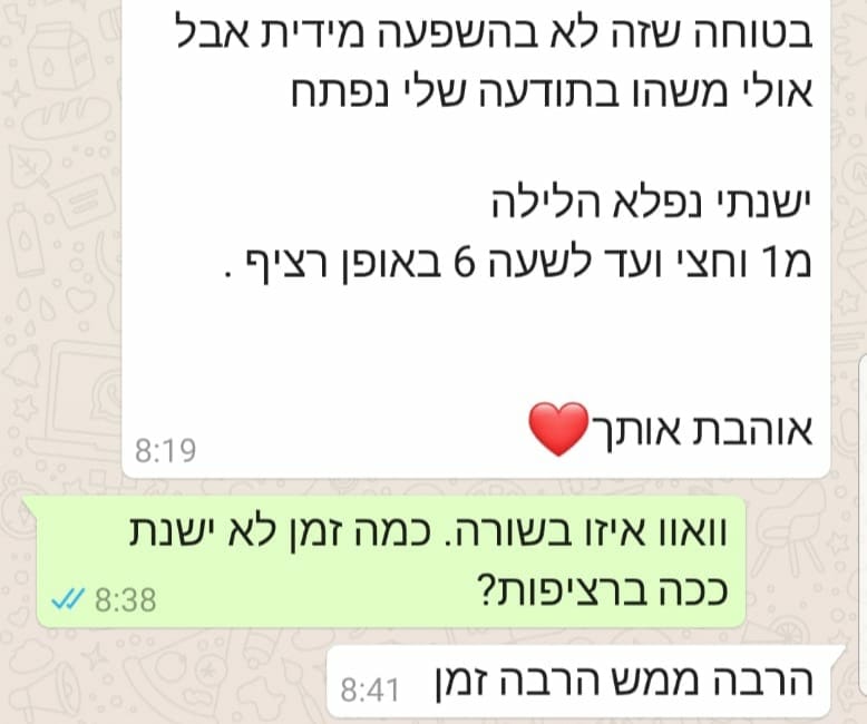 וראה זה פלא.. ימים ספורים עברו, התחזקתי פיזית, מצב הרוח שלי השתפר, חזרתי לעבוד עם הלקוחות והמשכתי בשיווק העסק ,