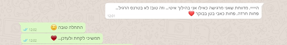 התחלנו את התהליך חודש ימים לפני הטיסה בהם רביד הייתה איתי בקשר ובדקה את מצבי. בזכותה החופשה שלי הייתה מושלמת, רוגעה וטובה.